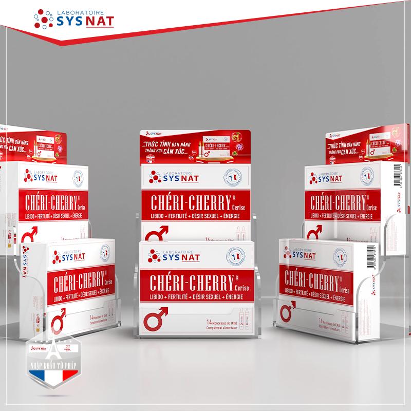 Được viện nghiên cứu SYSNAT của Pháp cho ra đời sản phẩm: Chéri Cherry là dạng thực phẩm bổ sung tăng cường sinh lý cho nam giới .Chiết xuất từ nhiều thành phần tự nhiên như: Nhân Sâm, Maca, Nghệ tây, Gừng, Bạch tật lê,… và nhiều dược liệu quý khác.